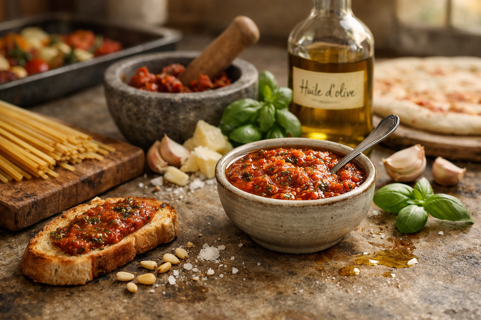 Une version maison avec 100 g de tomates séchées de qualité, 50 g de parmesan affiné et une bonne huile d’olive restera toujours plus aromatique et moins sucrée qu’un produit industriel moyen.