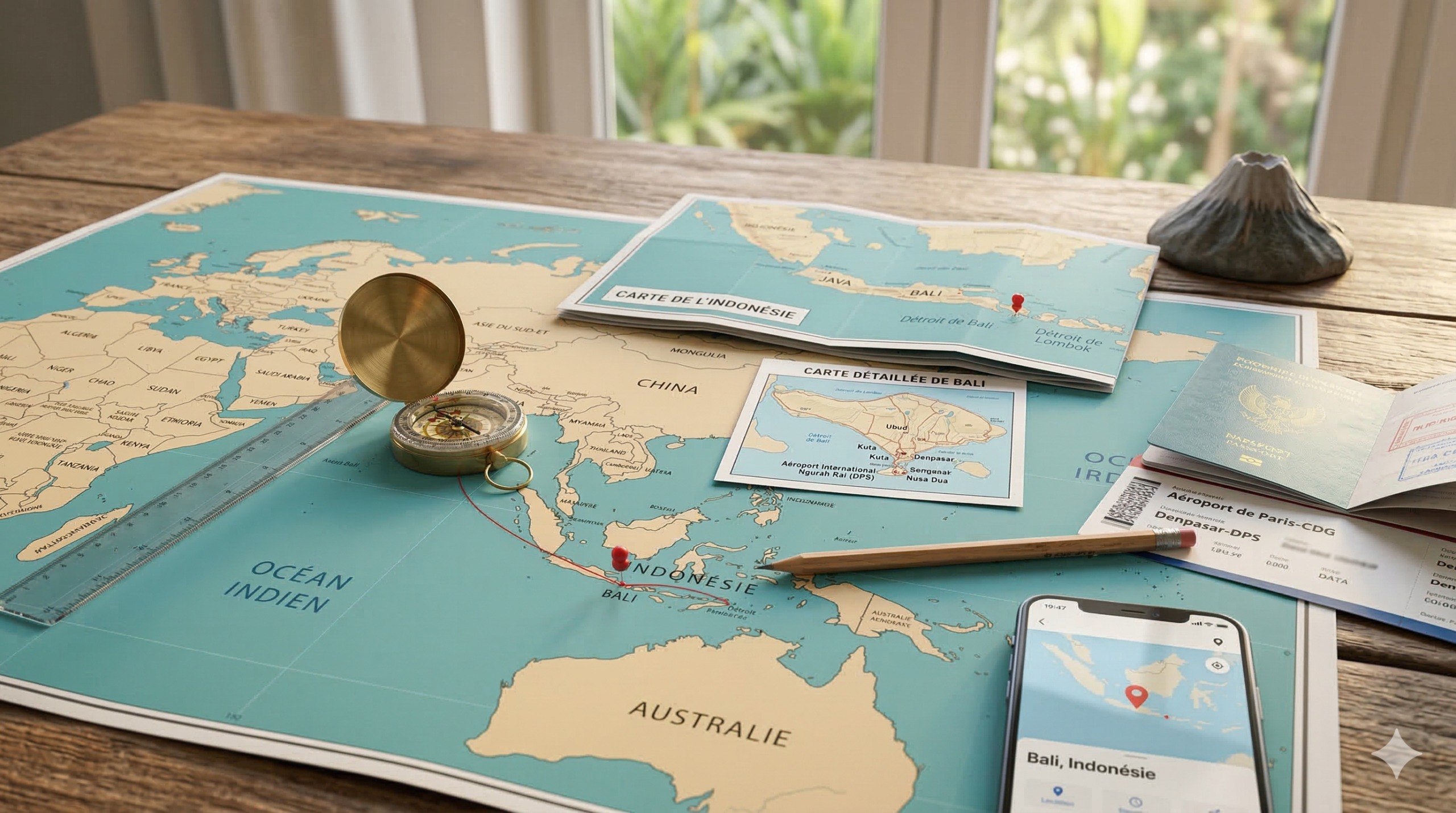 Cartes utiles pour voyager : monde, Indonésie et carte détaillée de Bali