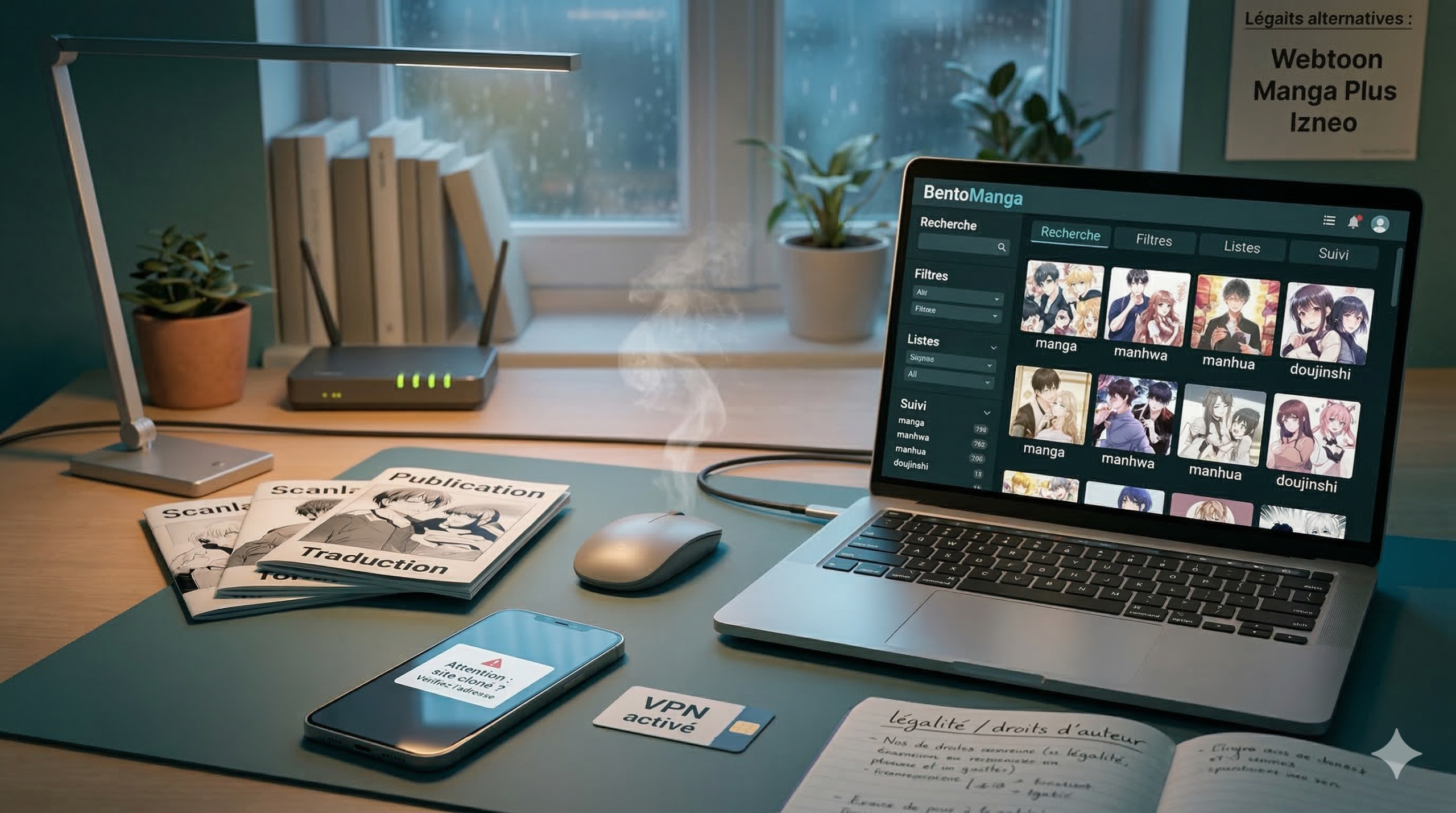 Bentomanga est-il légal : scanlations, droits d’auteur et risques de fermeture