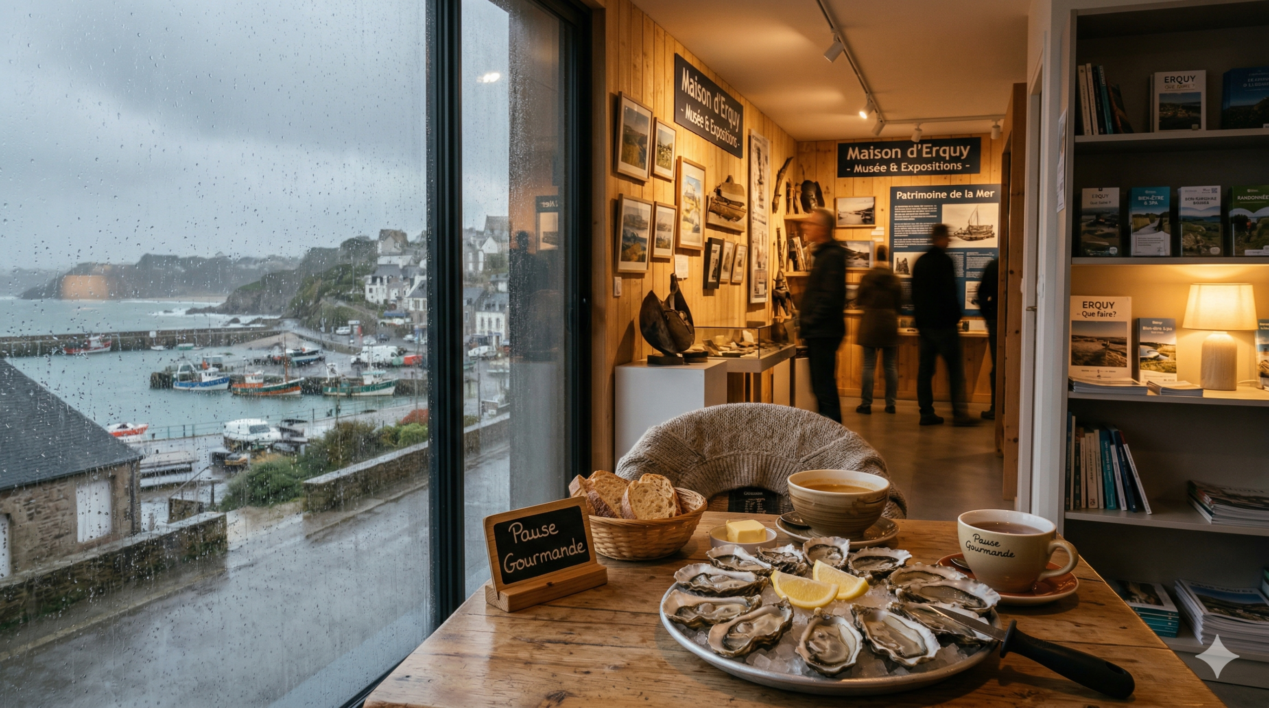 Se réchauffer autour d’une boisson chaude ou d’un repas breton, c’est l’un des plaisirs simples d’Erquy sous la pluie.