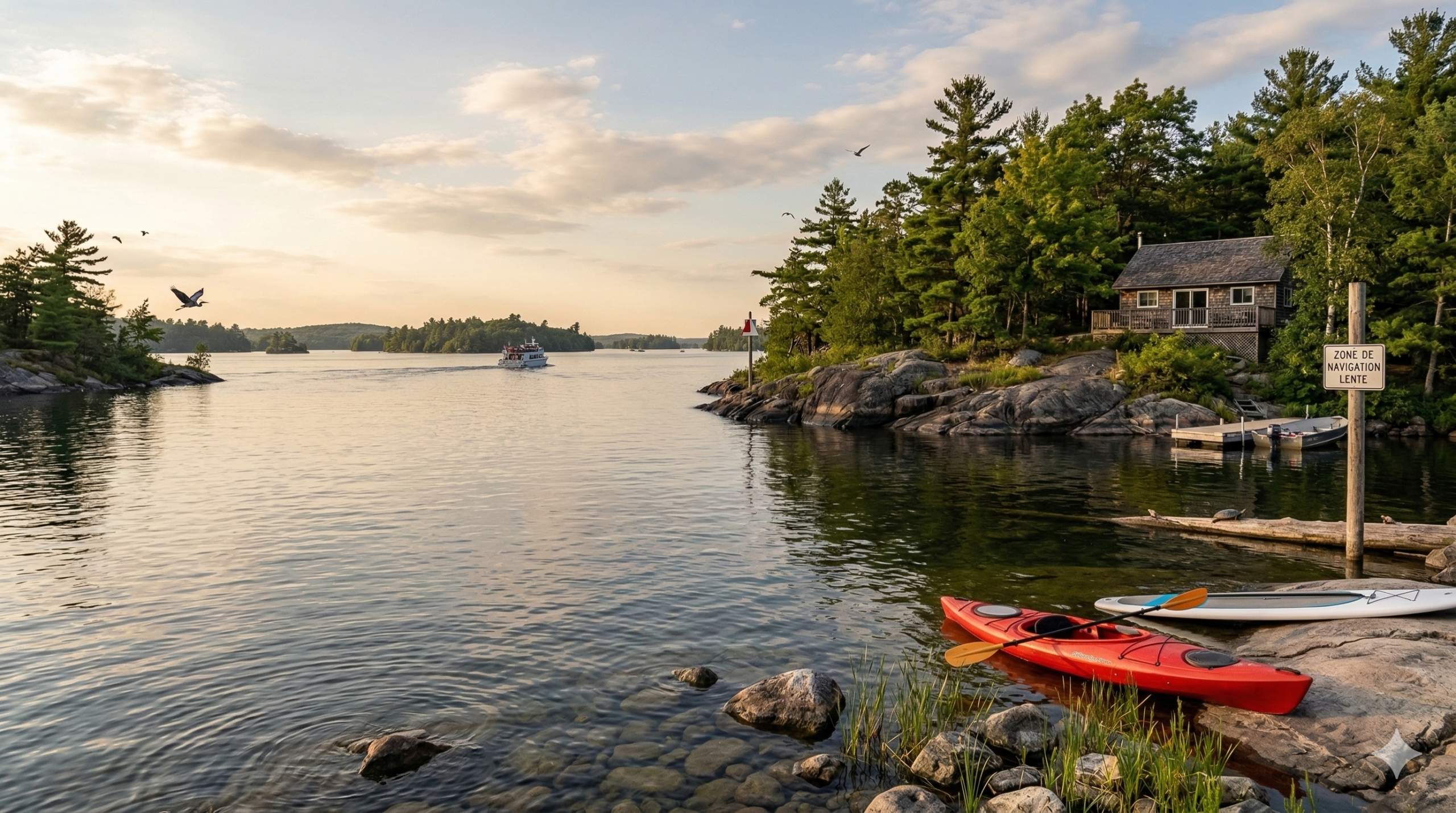 Coordonnées GPS de référence : 44.391°N, 75.912°W. Munissez-vous d’une carte nautique à jour si vous naviguez en autonomie.